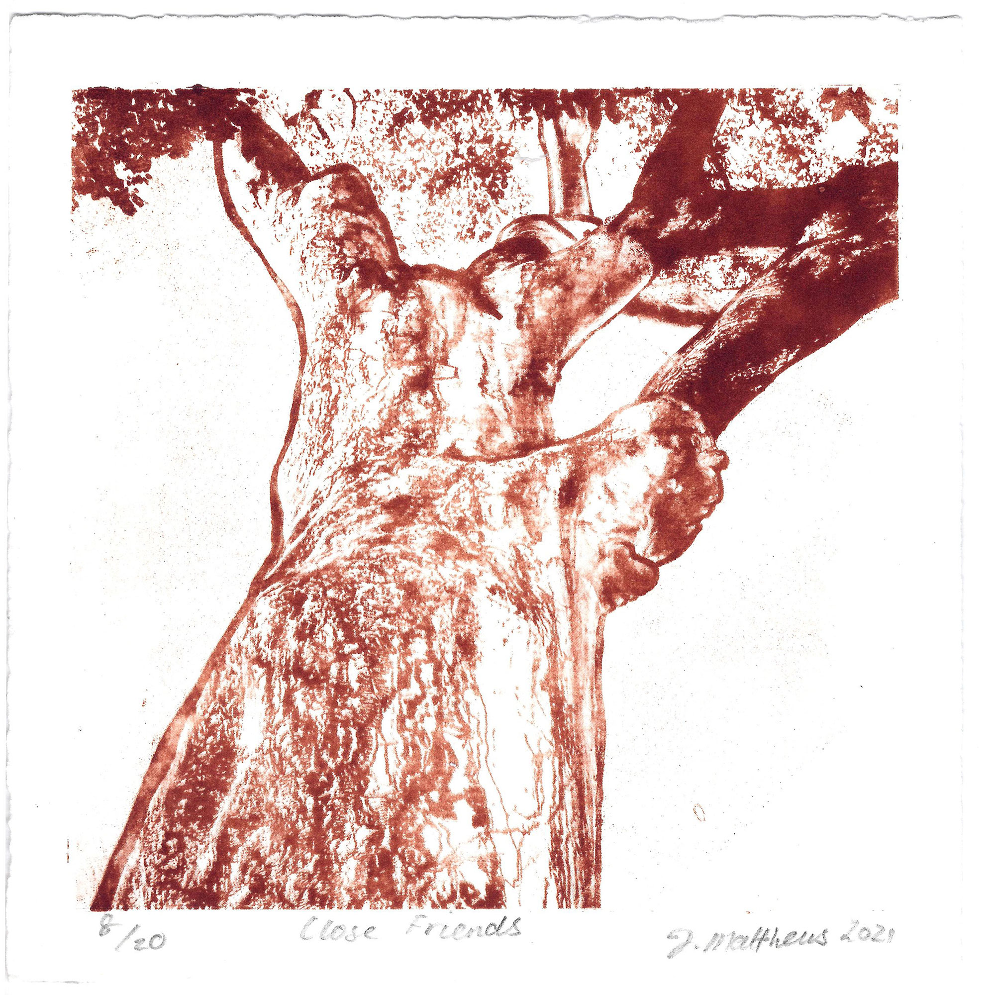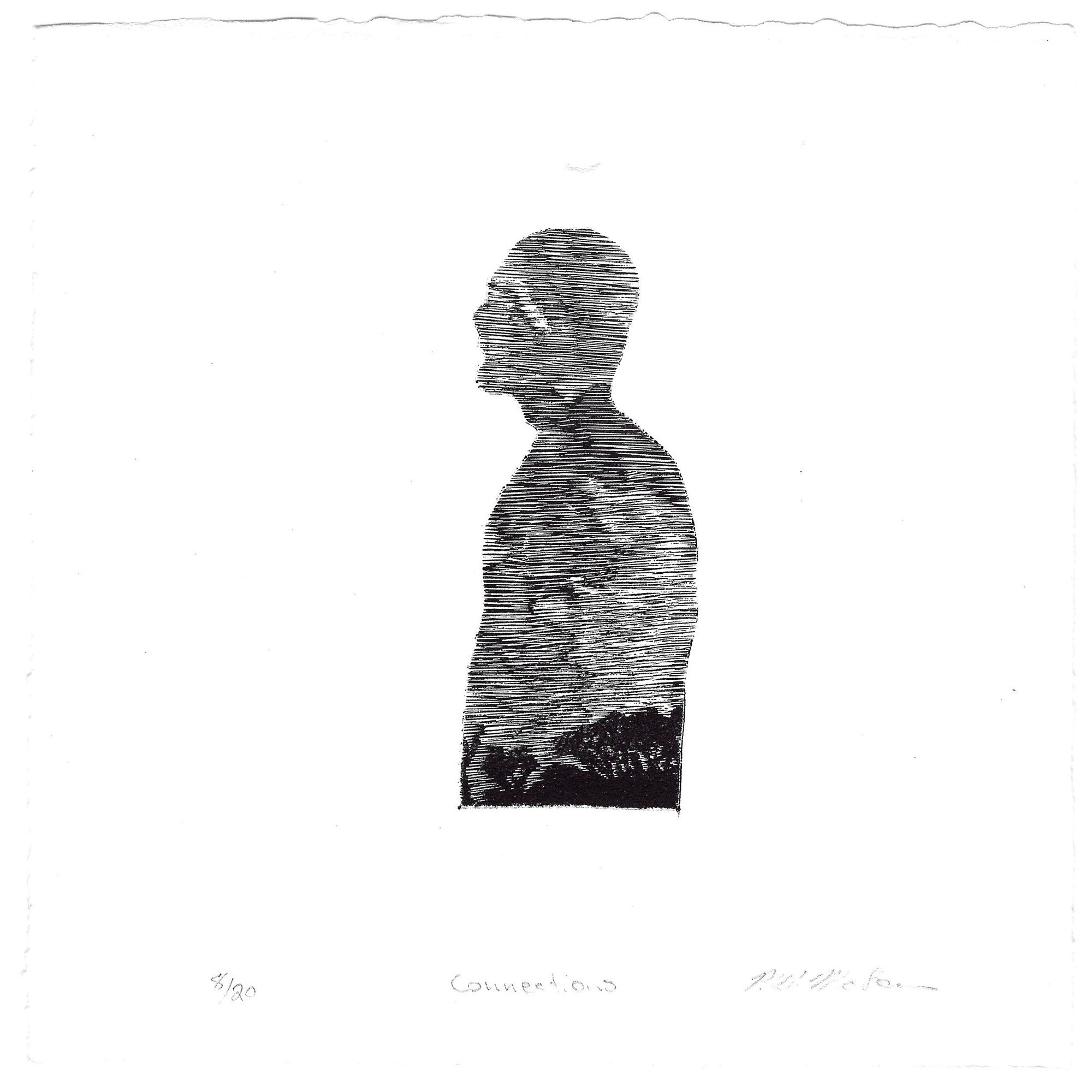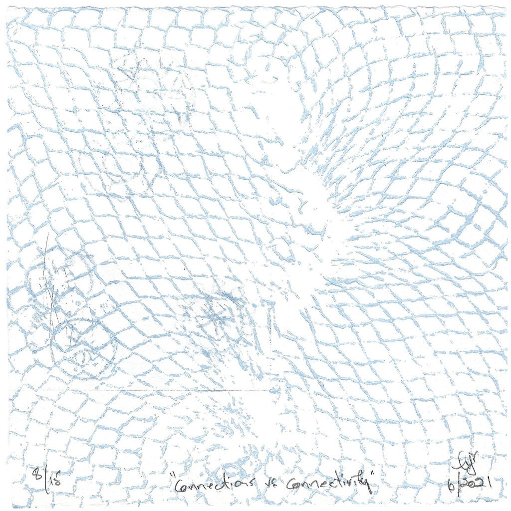 Our theme was ‘Connections’ and as someone pointed out – there are not that many things that are not connected! All prints were 20 x 20 cm and on printmaking paper of various types and weights.