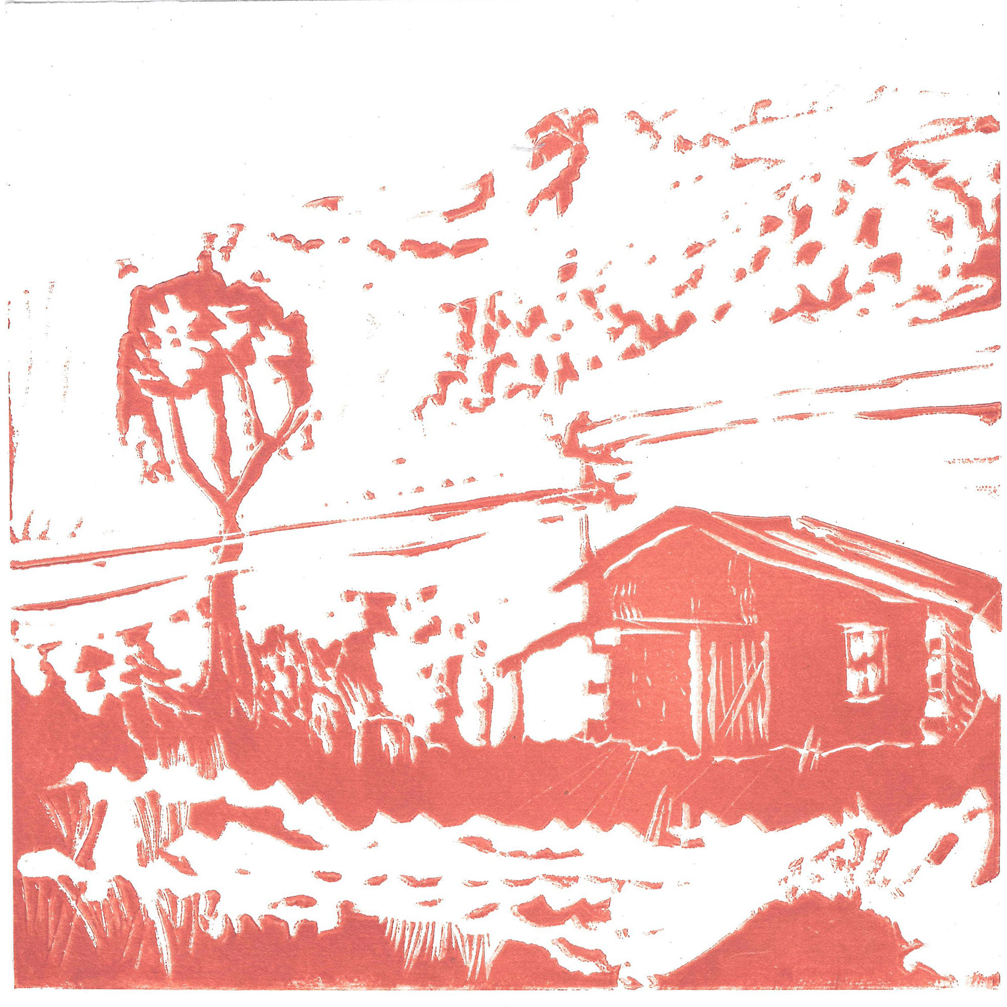 If anything, the Maleny Printmakers had concentrated on the natural environment and connections to country. Neville Field’s linocut had a historical slant depicting the old Alice Springs telegraph station and the connection involved in telecommunication.