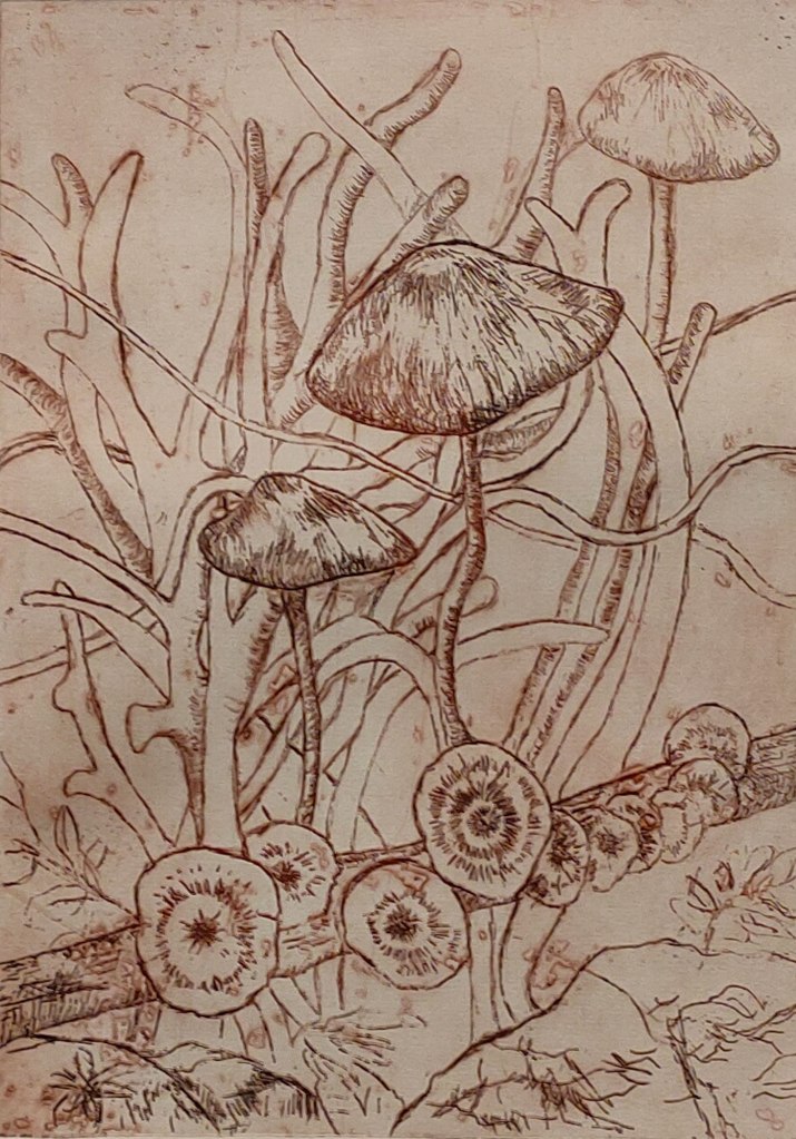 The Maleny Printmakers were back at Mary Cairncross this year for another printmaking exhibition. Our theme this time was ‘fungi’. We all learnt a bit more about fungi, and the fungi of south-east Queensland in particular as we prepared for our ‘Amazing Fungi’ exhibition.