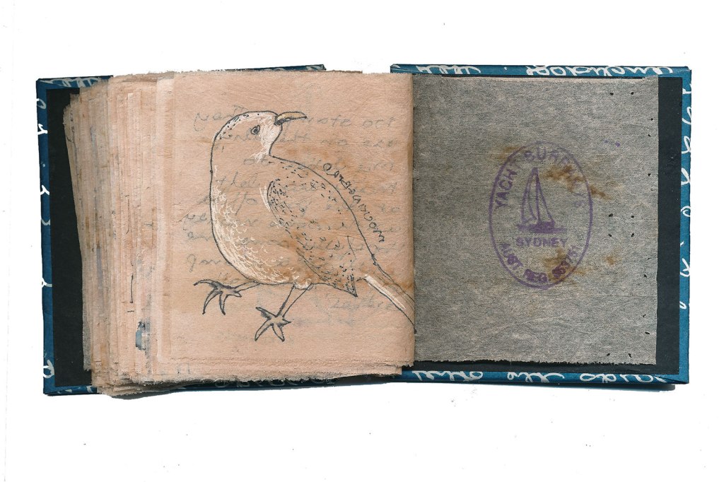 Around 10 years ago I was fortunate to get a grant to go to the McGregor Summer School at Toowoomba to do aquatints with Bernhadine Mueller. The etchings in the above book were produced then – all in a hurry in the workshop with bits and pieces etched right on top of each other as there was a shortage of small etching plates and no easy way to cut the large ones that were available. Some time later the etchings and some extracts from my journal were appropriated for this artist book which is a lovely memory of a rather extraordinary time in my life – sailing in the Red Sea. Cruising the Red Sea is somewhat of a rite of passage and we still remain in touch with the cruising sailors that were there the same year as we were.